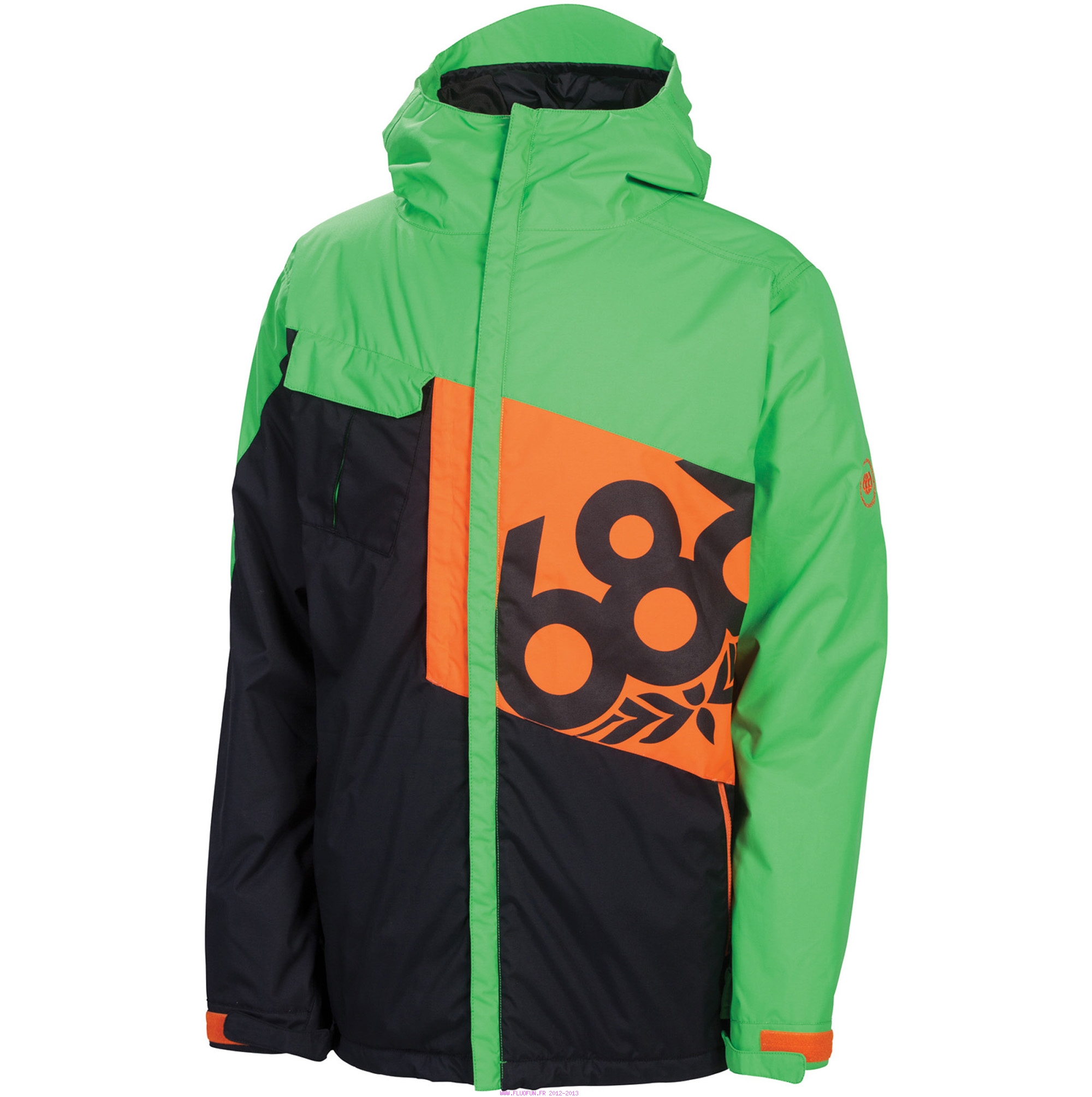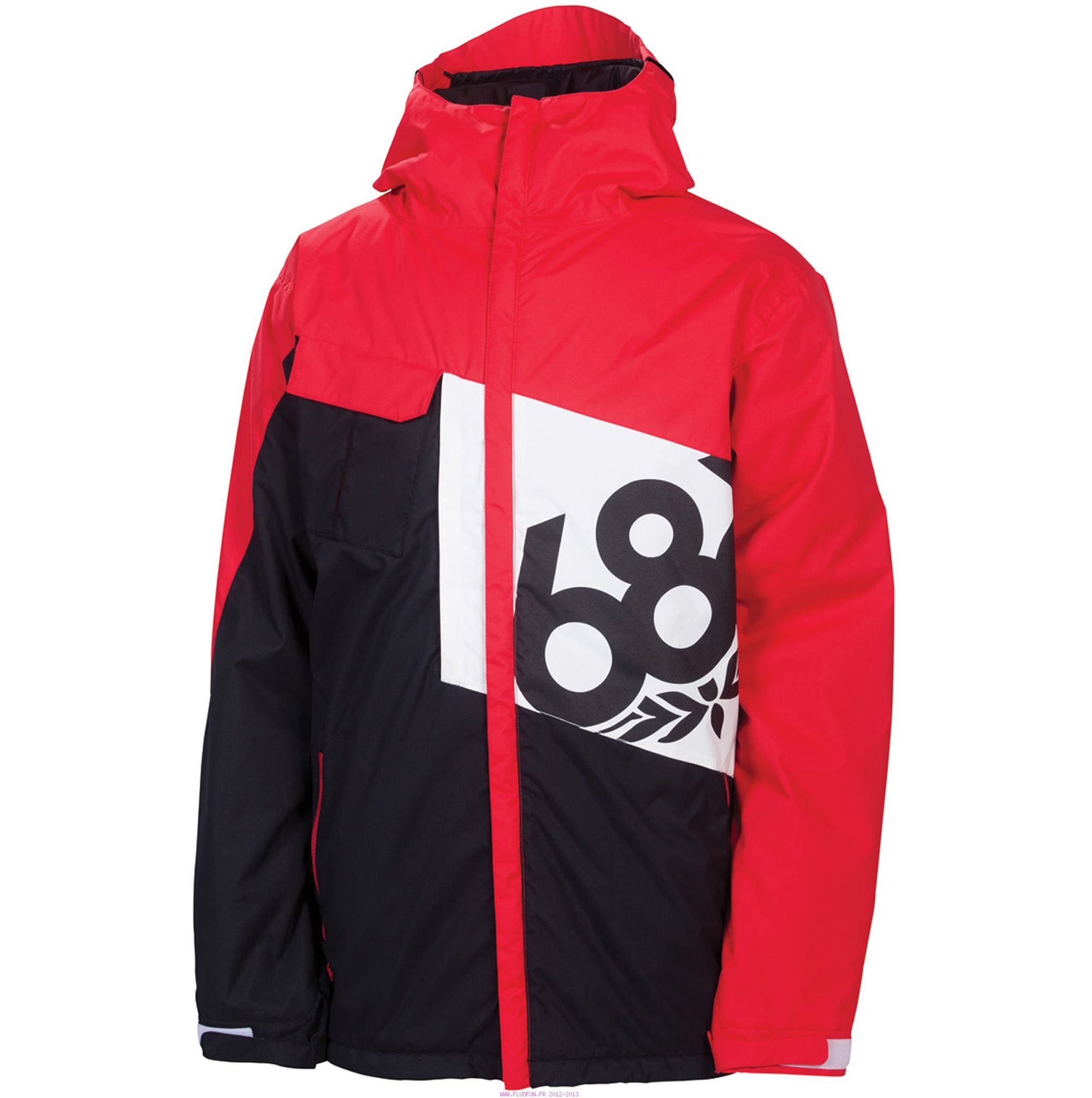 Prix mini et équipement maxi. Coutures thermosoudées, doublure polyfill 80gr., système de ventilation rapide AIR-FLO avec zippers aisselles anti-bloquants, zipper de ventilation poitrine, poche poirtine, visière de capuche laminée déperlante, capuche avec inserts lycra extensibles et cordon de serrage ?3-en-1?, poignets ajustables à double réglage, poches repose-mains isolantes avec porte-clés et accroche-gants, compartiment pour lecteur mp3, compartiment caché pour carte de crédit, ...