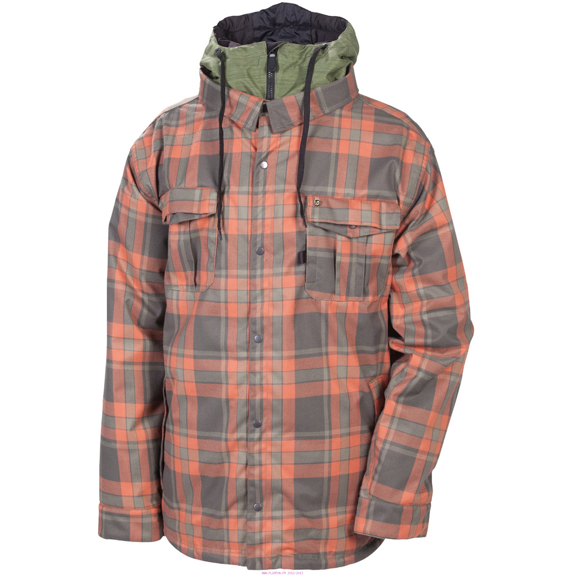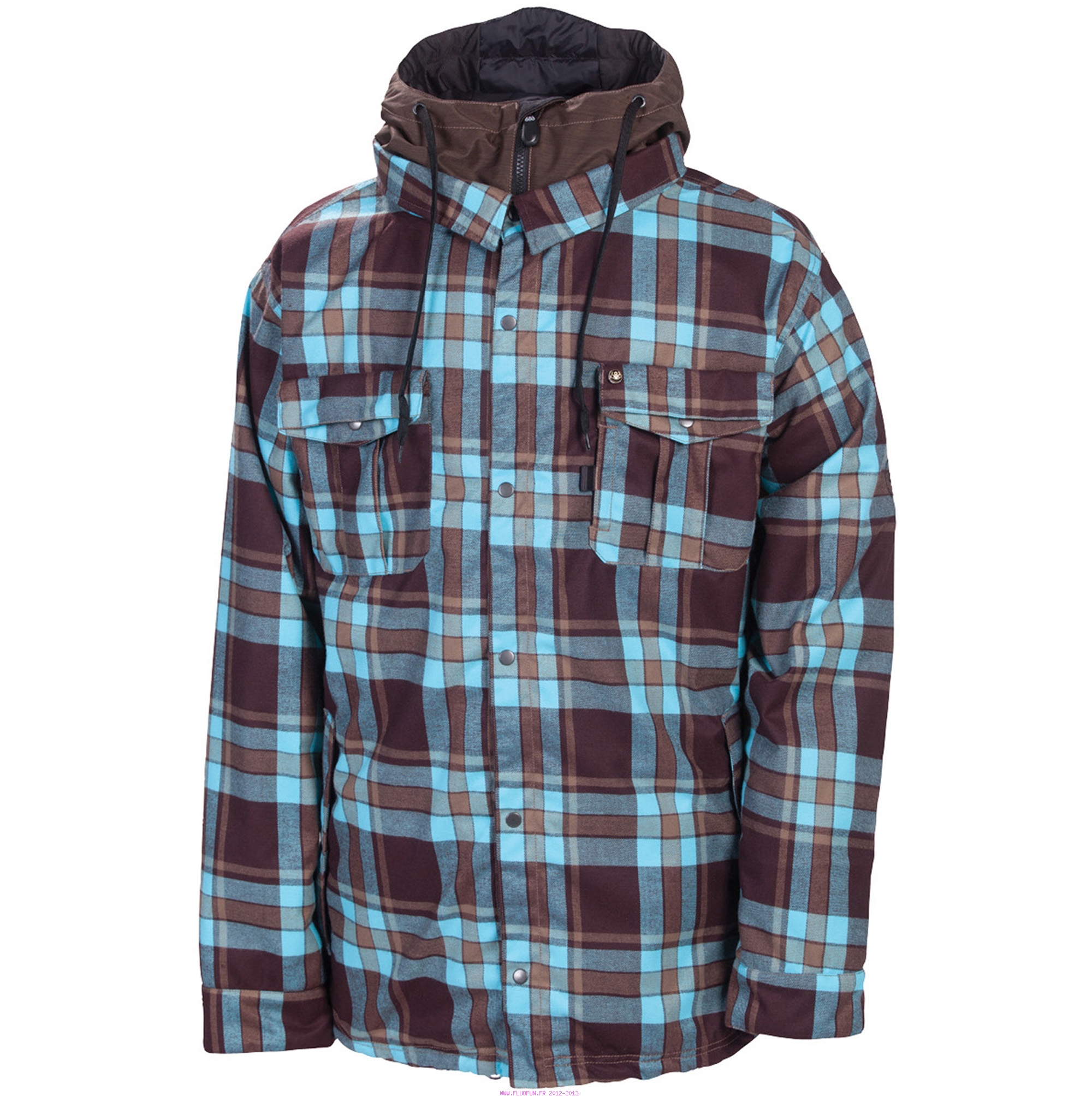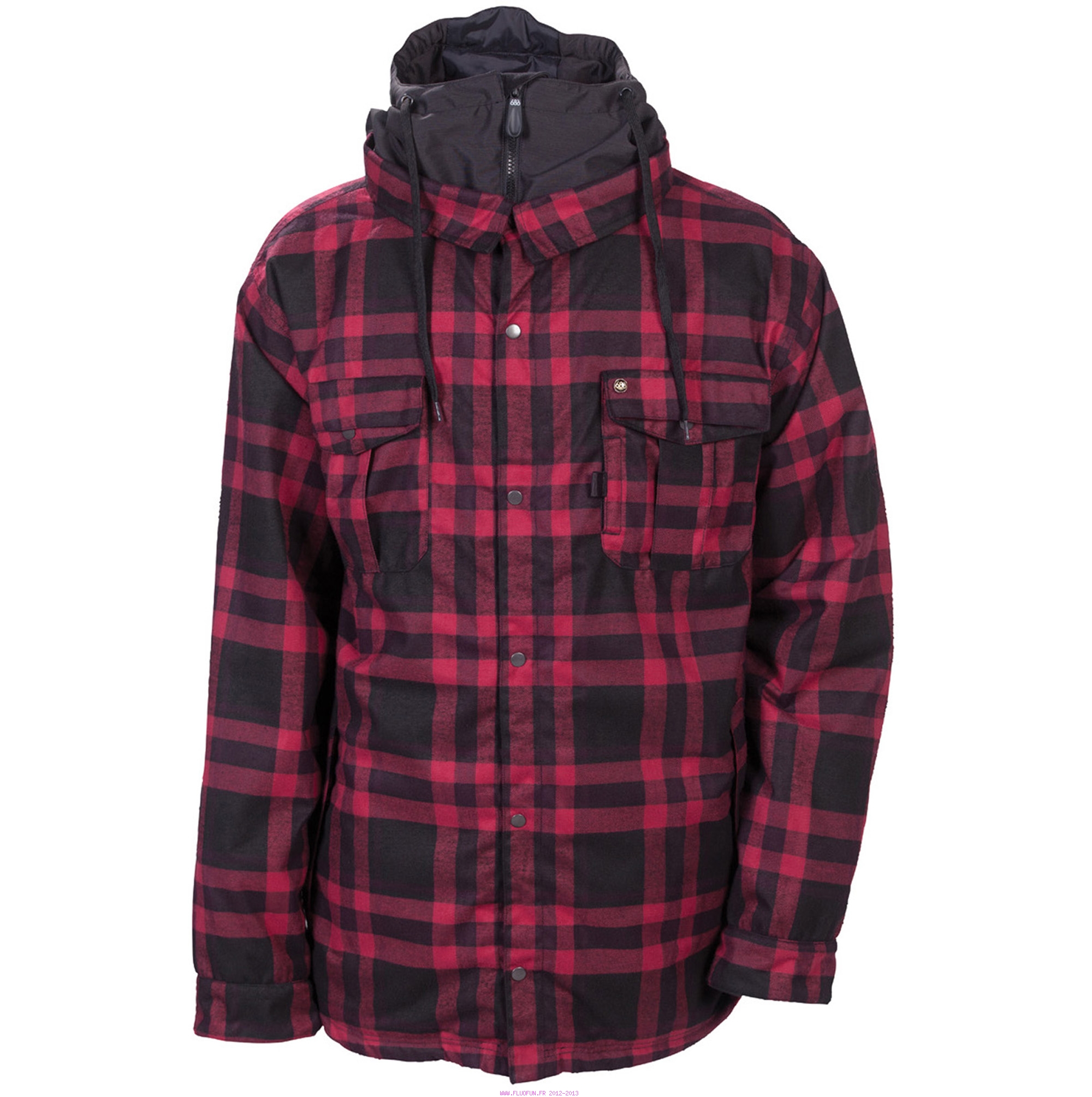 Look flannel pour le jibber qui sommeille en vous. Doublure polyfill 80gr., coutures thermosoudées, poches poitrines avec compartiment, capuche avec serrage, compartiment pour lecteur mp3 à double accès, compartiment caché pour carte de crédit, jupe anti-neige ajustable, interface veste-pantalon.