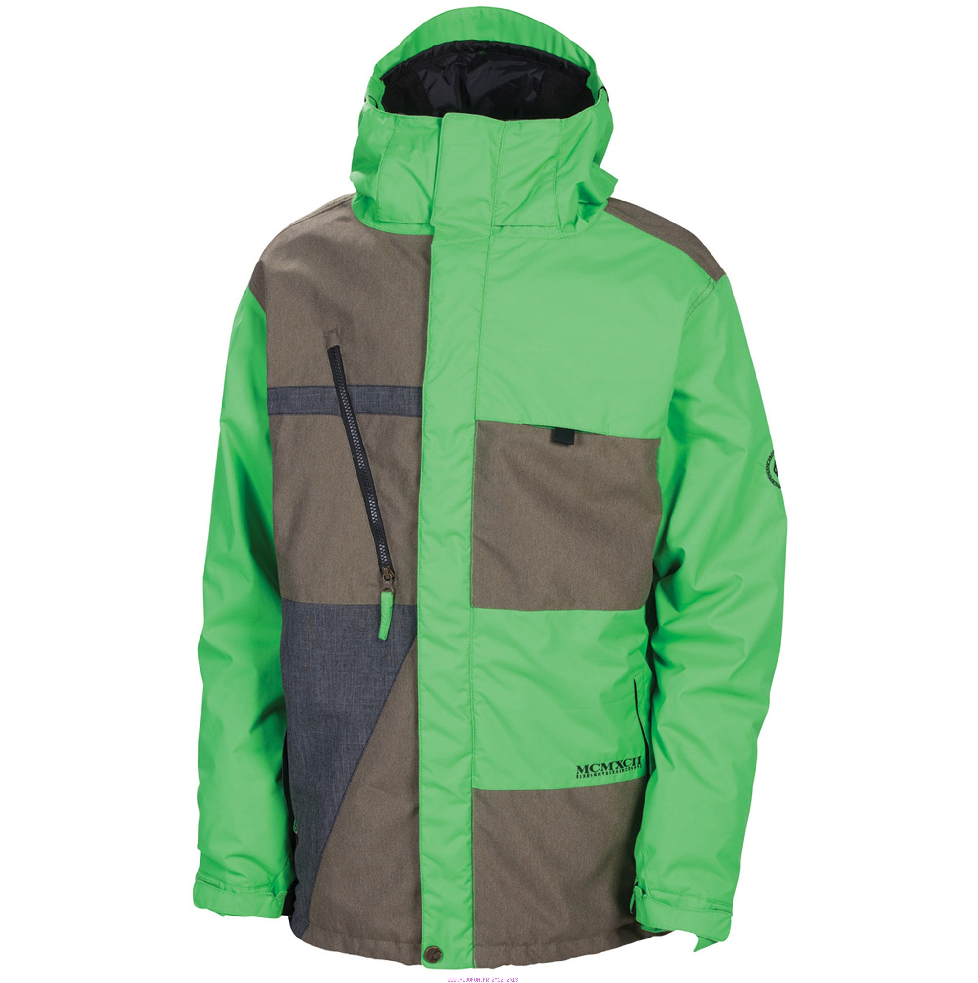 Colorblock stylé et excellent rapport qualite/prix. Doublure polyfill 80gr., coutures thermosoudées, système de ventilation rapide AIR-FLO avec zippers aisselles anti-bloquants, zipper frontal de ventilation, visière de capuche laminée déperlante, capuche avec inserts extensibles et cordon de serrage ?3-en-1?, poignets ajustables à double réglage, guetres de poignets en lycra, poche poitrine pour forfait rétractable FAST PASS, col avec panneau de ventilation, poches repose-mains ...