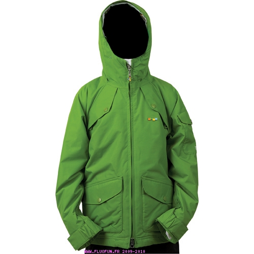 Jacket multi poches, jupe pare neige, système de serrage du bas de la jacket grâce aux élastiques intégrés à l'intèrieur des poches. Scratch velcros pour réglages au niveau des poignets. Capuche fixe avec système de serrage par élastiques.