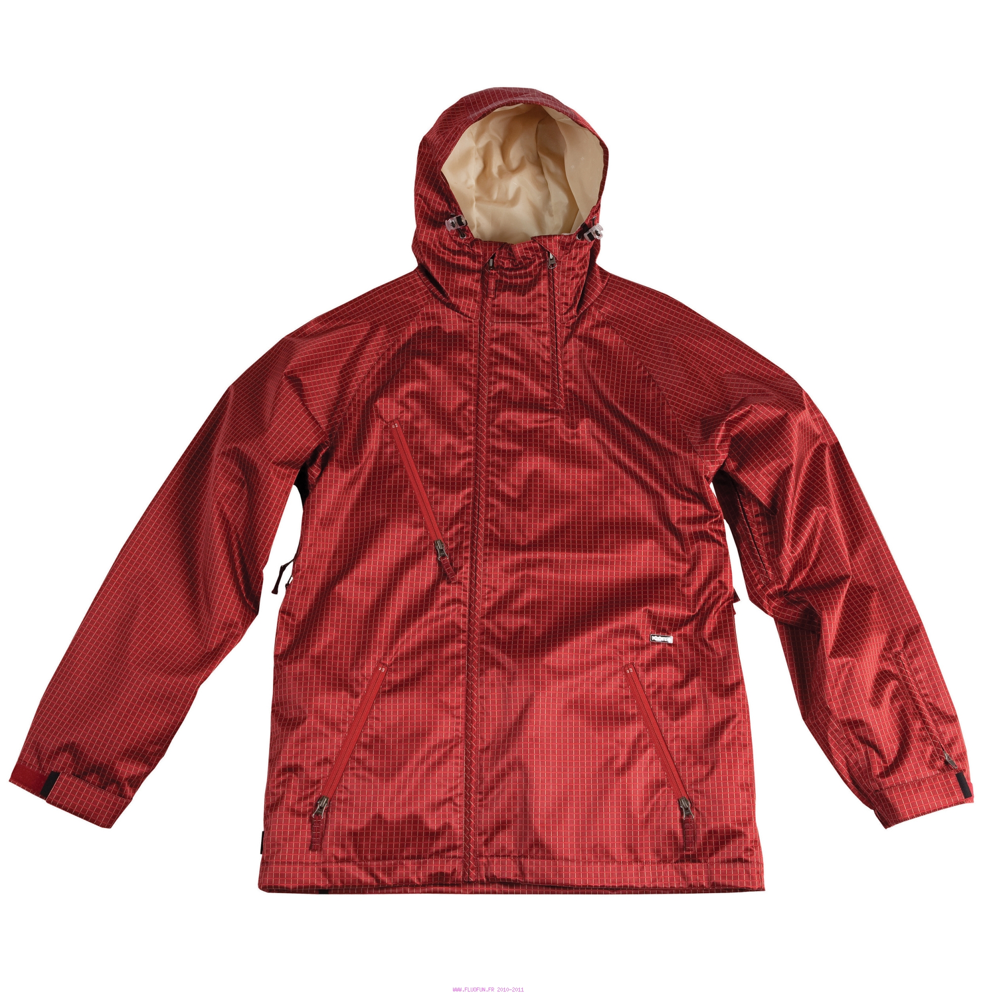 Veste snowboard et ski type shell jacket. Coutures entièrement scellées, aération aisselles (Tissu à mailles), jupe détachable anti-neige, poche zippée sur la manche gauche, ouverture zippée en diagonale au niveau du menton, poche interne pour MP3, rangement spécial pour le forfait, cordon élastique ajustable à la taille, ajustement elastique+velcro aux poignets, Guêtres anti-neige aux poignets.