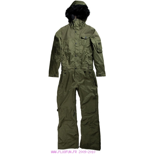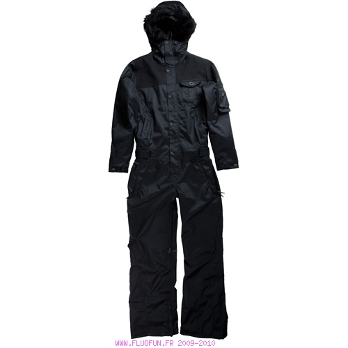 Combinaison intégrale, coupe women's relaxed fit, garnissage Polyfill 80gm au corps et 40gm au niveau des genoux, fesses et capuche et doublure micro-polaire aux fesses, coutures cousues-collées intégralement, capuche fixe avec fourrure amovible, aérations sous les bras doublées en mesh imprimé, neuf poches au total, ceinture extérieure réglable, poche pour lecteur mp3 avec passage pour cordon du casque, poche intérieure en mesh pour ranger son masque, détails avec logo Lita.