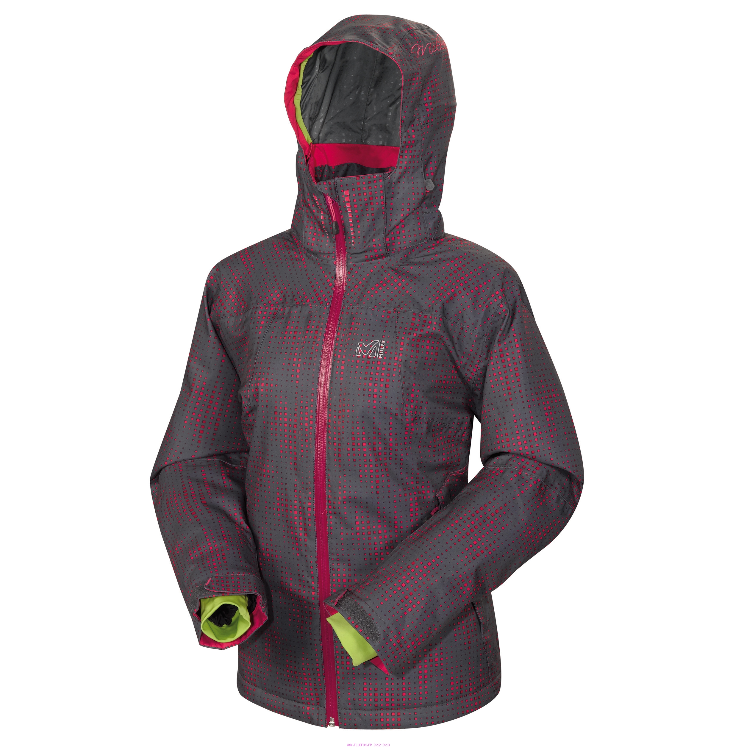 Protection freeride chaude en DRYEDGE? 2L / 100% stretch au look féminin et technique / Capuche réglable et amovible par zip / Zip central étanche / 2 poches repose mains zippées sous rabat / 1 poche "Easy Access?" sous rabat / 1 poche intérieure sécurité compatible MP3 + 1 poche mesh 3D / Essui lunettes intégré / Jupe pare-neige montée sur bandeau stretch avec système de connexion compatible avec le pantalon / Manchons Lycra / Poignets + bas réglables / Version coloris avec un all-over exclusif Millet