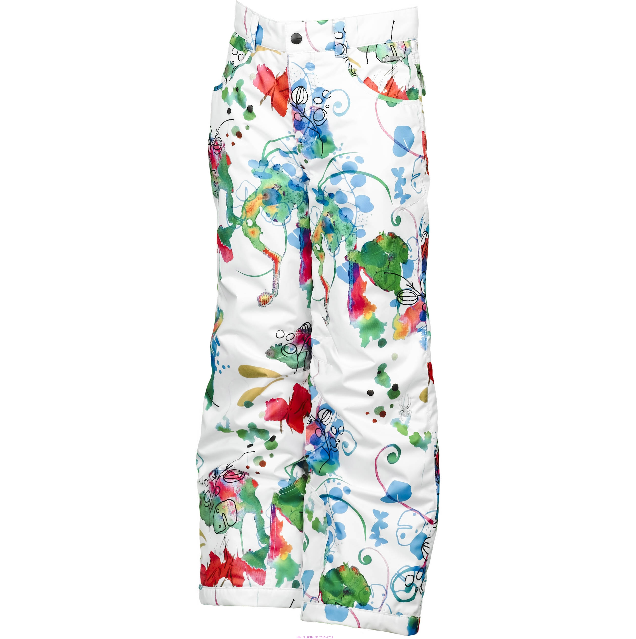 Pantalon de ski fillettes, stretch suivant les coloris, coutures thermosoudées, passants ceinture à la taille, ajustement possible à la taille, guêtres, renforts en bas de pantalon, 2 poches repose-mains, 2 poches arrière sous rabat, doublure intérieure en nylon taffeta