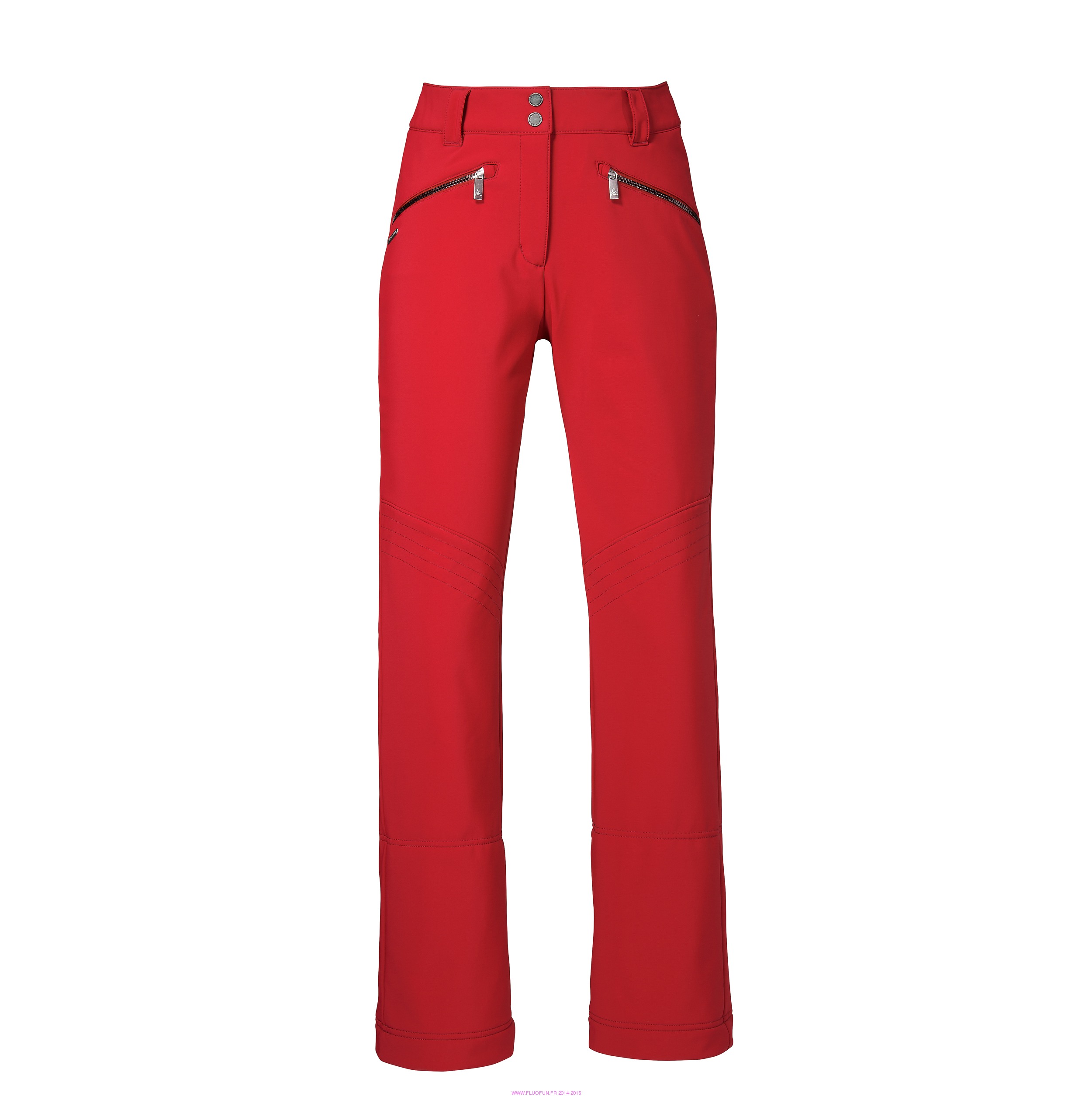 Pantalon de ski pour femme en Venturi® Soft Shell stretch, look rétro, coupe près du corps, élégant et confortable. Deux poches zippées latérales. Fermeture par zip sous rabat et bouton-pression en métal. Finitions : matière intérieure agréablement douce. Ceinture à passants, montée plus haute à l'arrière. Jambe légèrement évasée avec guêtre pare-neige et caoutchouc antiglisse à l'intérieur. Zip à l'arrière au niveau du mollet permettant de chausser ses chaussures de ski ...