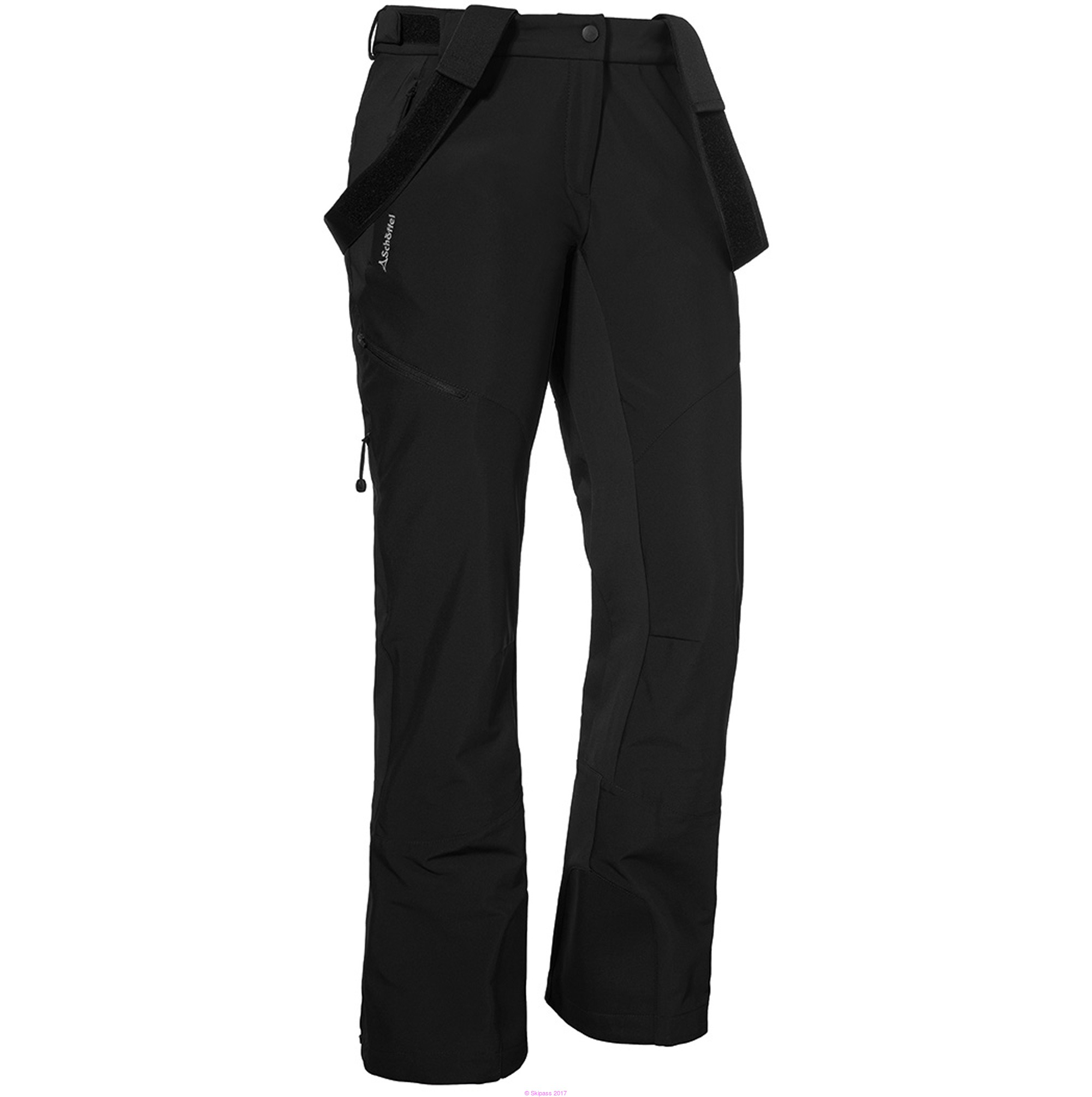 Pantalon de ski de randonnée femme en Gore® Windstopper® avec finish WR C6 (apprêt déperlant avec composés fluoro-organiques pour rendre les laminés imperméables à l'eau, éviter les salissures et la pénétration du gras mais sans PFOA / acide perfluorooctanoïque). Vêtement labellisé bluesign® (au moins 90% des étoffes et 30% des pièces accessoires doivent respecter les critères de minimisation de l'impact sur l'environnement établis par l'organisation). 3 poches (devant et cuisse) fermées par zip YKK. Bretelles amovibles, zips de ventilation sur les cuisses, guêtre avec crochets de maintien sur la chaussure. Taille ajustable par patte et velcro, bas de jambe avec inserts intérieurs en Cordura® aux chevilles et zip. Zips de ventilation intégrés aux coutures latérales (au niveau de la cuisse).