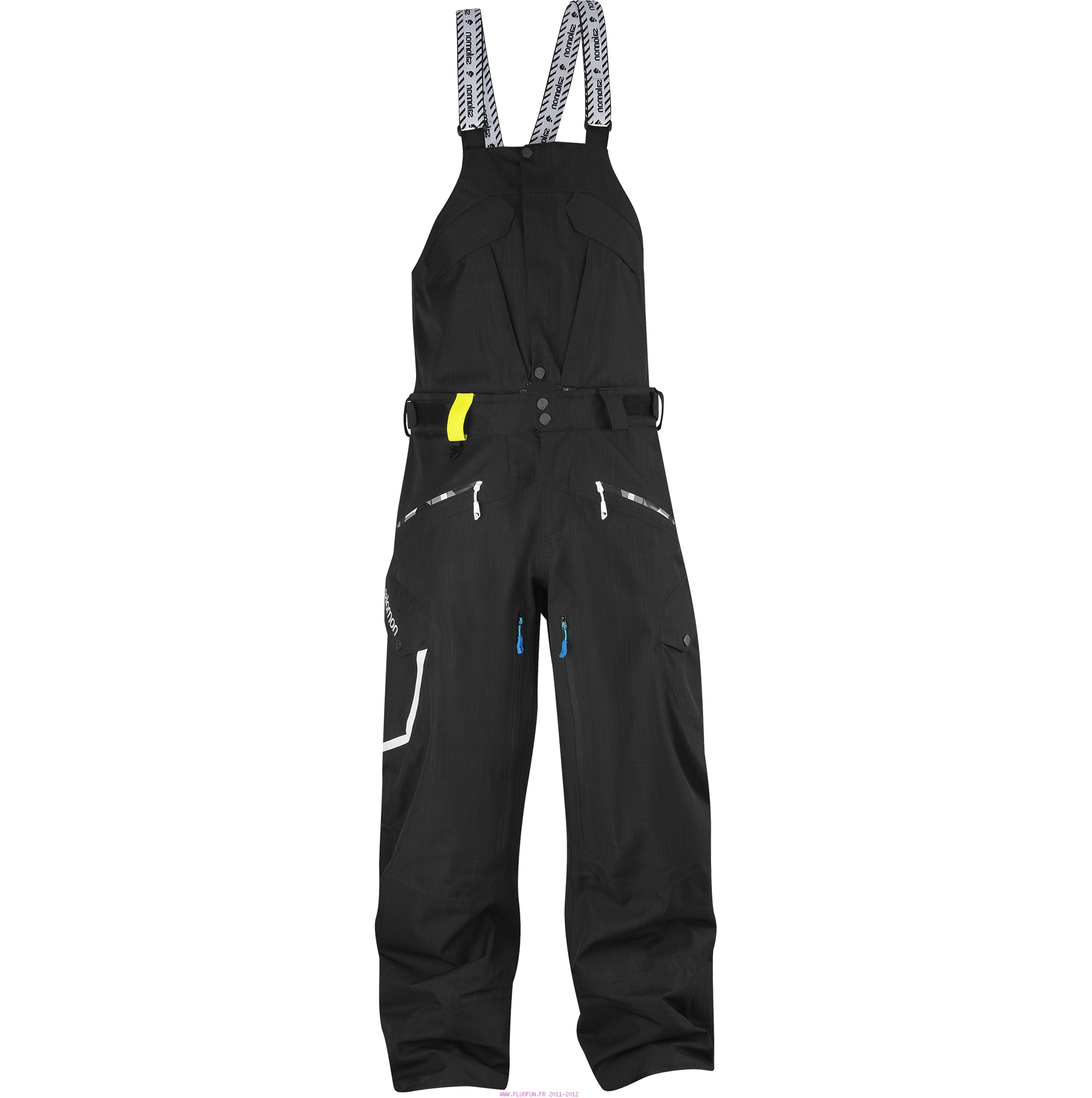 Pantalon style salopette axé performances, conçu avec l'équipe big mountain Salomon : matière CLIMAPRO STORM 3L, bretelles amovibles, aérations intérieur jambes avec zips imperméables et système d'évacuation de la neige au bas du pantalon