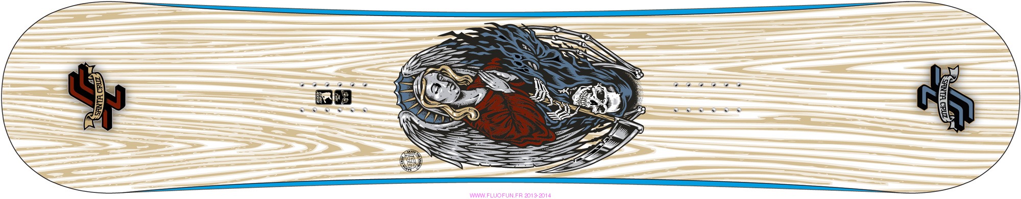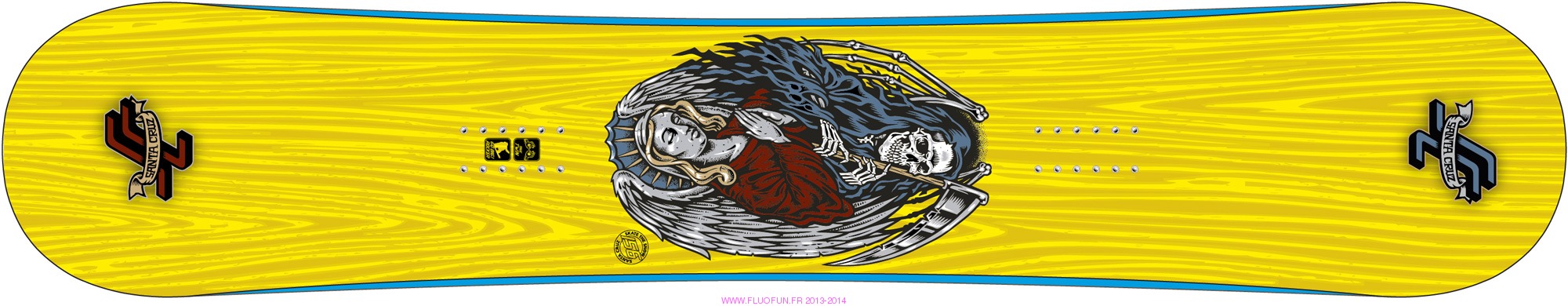 Cambre " go big rocker" ( double cambre inversé très prononcé), double ligne de cotes, sidewall ABS+, noyau bois HCM FLY, topsheet fibre laminate xenogen TRIAX 30, base SPEED X5000, Flex/Torsion : 6/7
